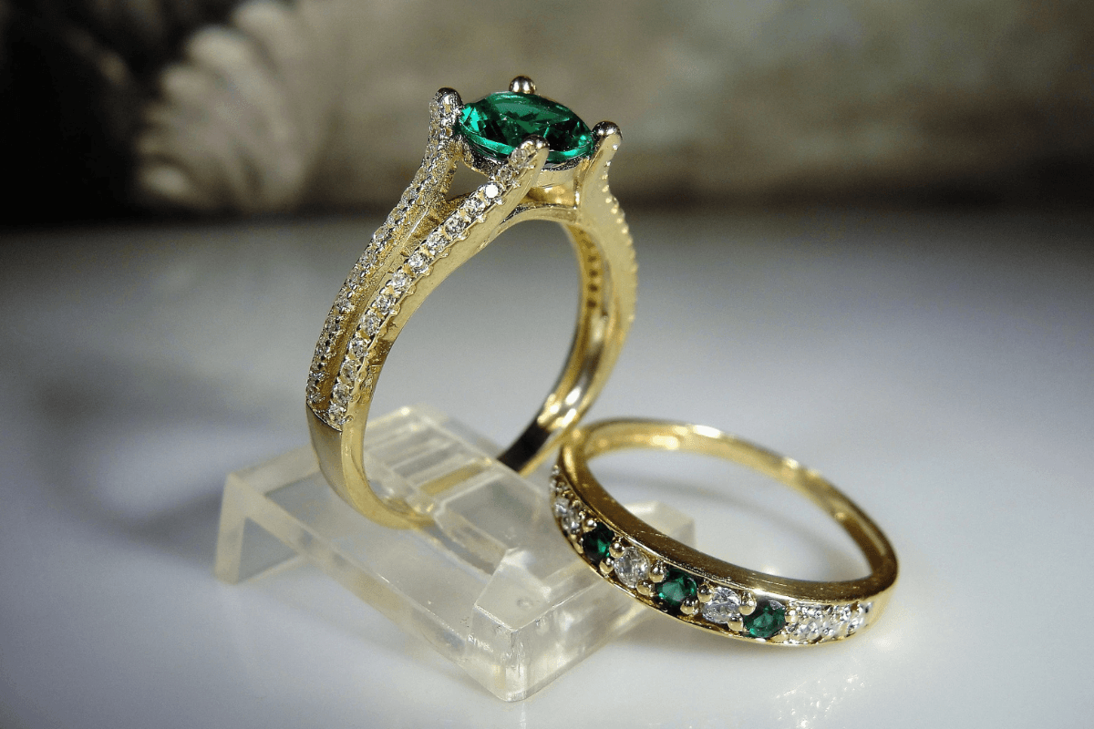 कपल अपने एंगेजमेंट के लिए इस तरह के कपल रिंग चुन सकते हैं. ये डिजाइन बहुत ही यूनिक और खूबसूरत है. चारों तरफ से डायमंड के घेरे में ग्रीन कलर का स्टोन इसे बहुत ही स्टाइलिश बना रहा है.