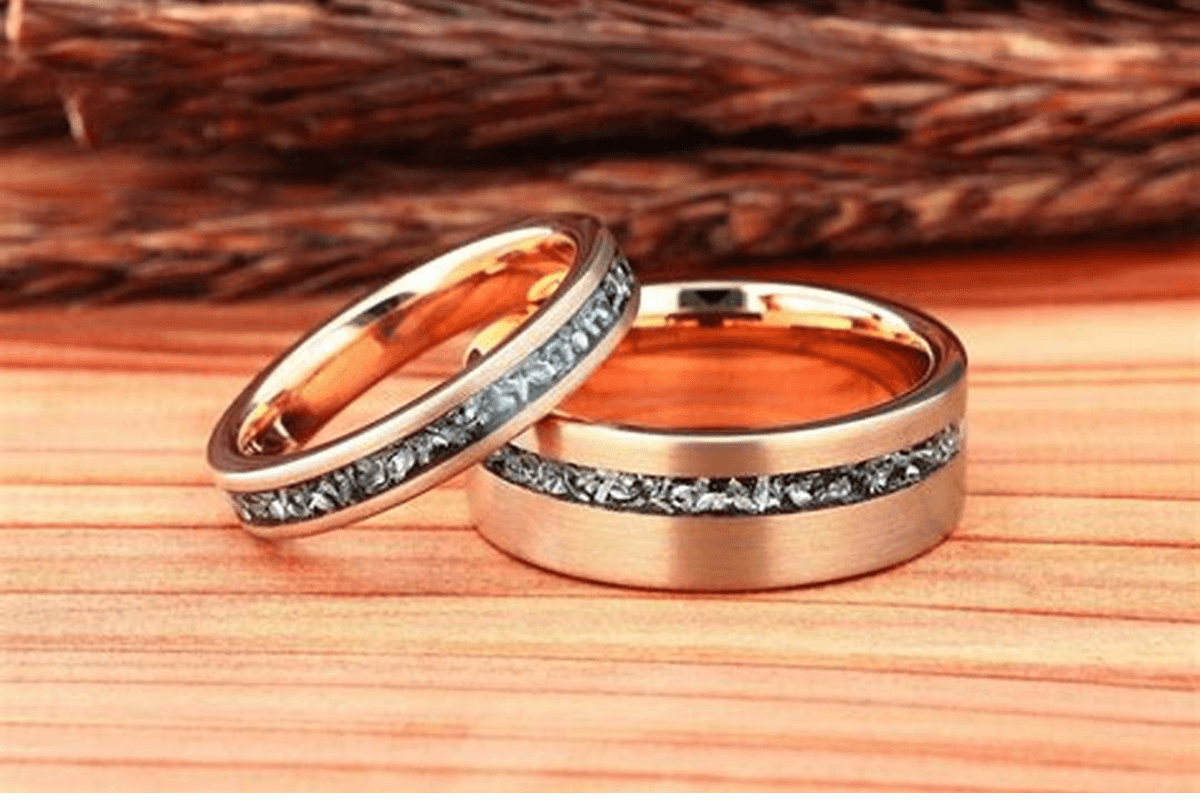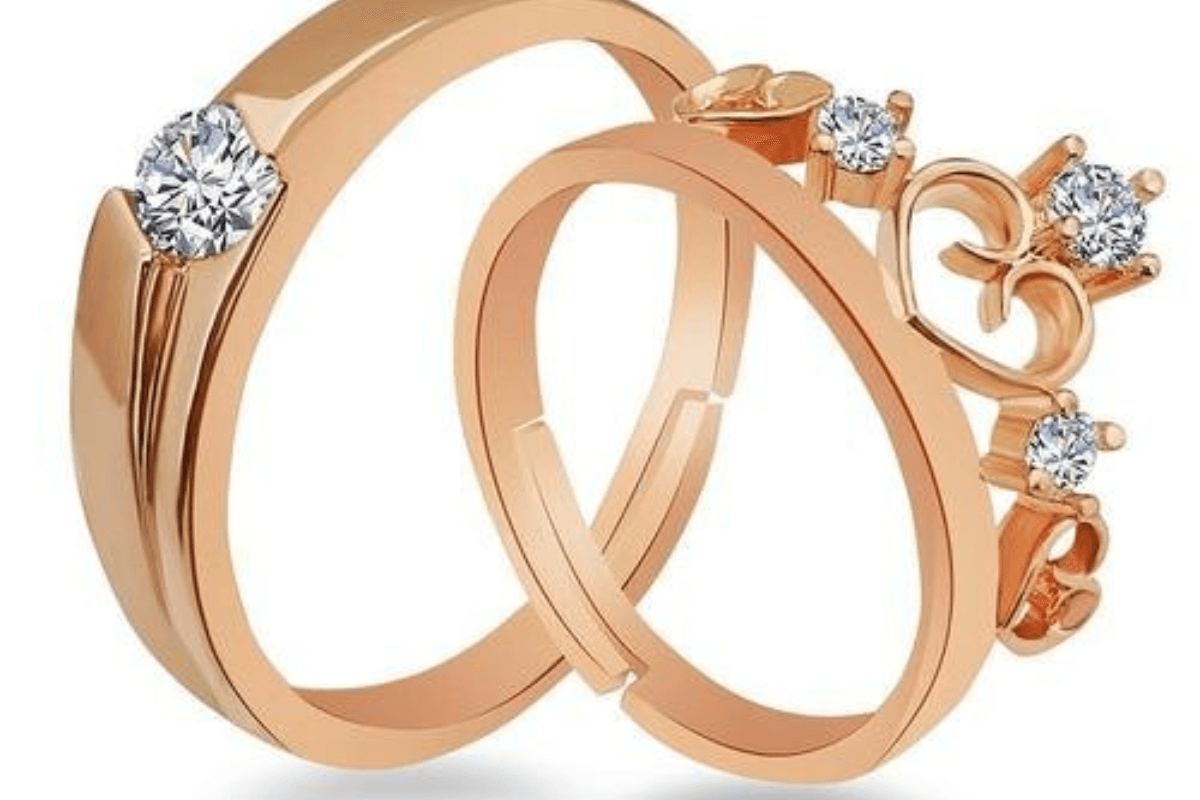 आजकल इस तरह के कपल रिंग ट्रेंड में हैं. आप इसे हमेशा पहनकर रख सकते हैं और यह आपको एलिगेंट और स्टाइलिश लुक देता है. यह गोल्ड रोज का बना होता है, जिसके बीच में छोटे-छोटे डायमंड की लाइन में डिजाइन बने हुए हैं जो इसे मॉडर्न बनाते हैं.