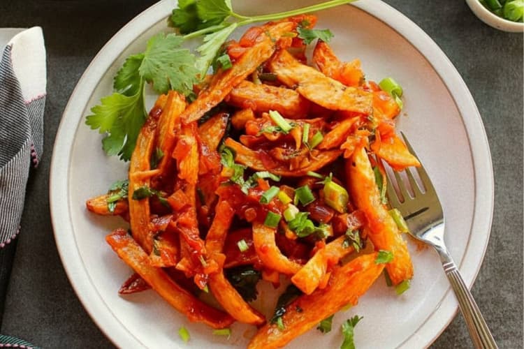 - कढ़ाही में तेल गरम करें और मध्यम आंच पर आलू को गोल्डन ब्राउन और क्रिस्पी होने तक तलें.