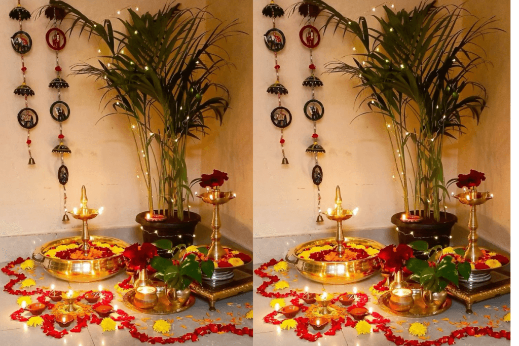 1. फूलों और दीयों से सजाएं