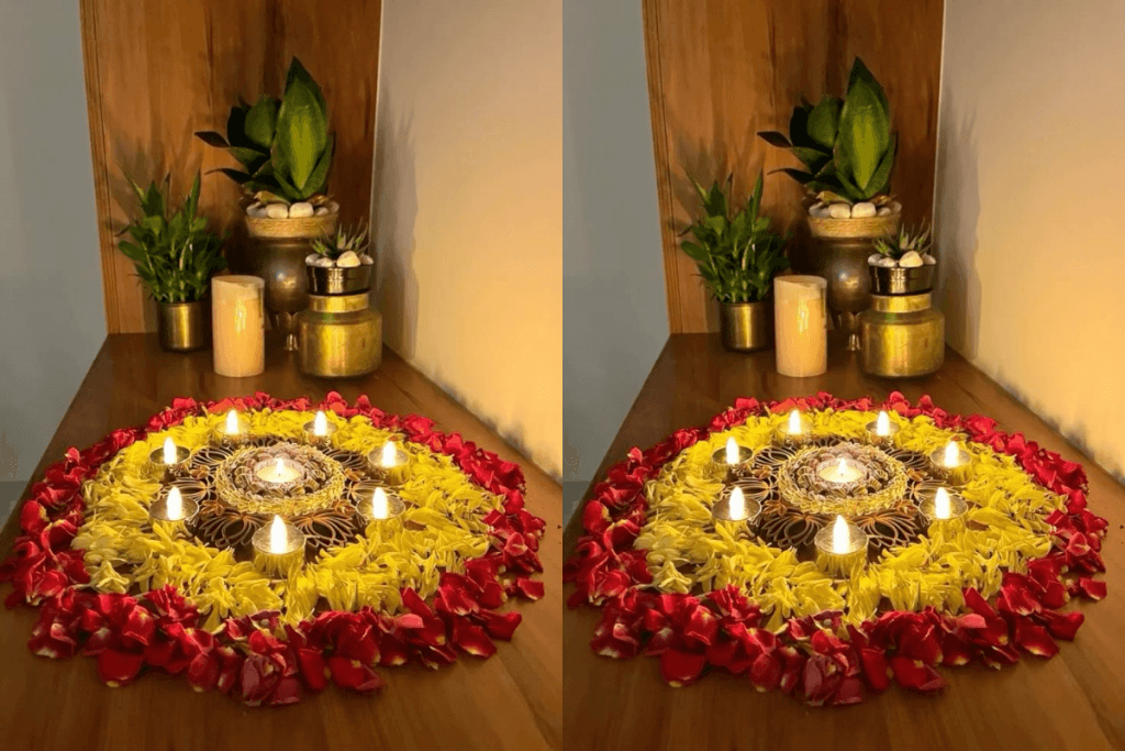 2. रंगोली और लाइट्स का उपयोग