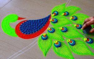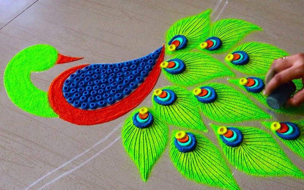 Easy Rangoli Designs For Diwali 2022: दिवाली का त्योहार नजदीक है. दिवाली पर घर में आने वाले हर मेहमान का ध्यान सबसे पहले रंगोली पर ही जाता है. रंगोली में पीकॉक डिजाइन रंगोली होती है. जिसे आप आसानी से अपने घर पर 10 मिनट में बना सकती है. पीकॉक रंगोली डिजाइन देखने में काफी खूबसूरत लगती हैं.
