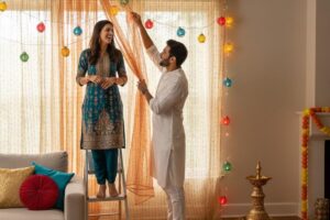 दिवाली पर खूबसूरत पर्दे और कुशन से घर को सजा सकते हैं. इसके लिए आप ब्राइट कलर के पर्दे चुनें. आप लंबे पर्दों को रूम में लगाएं. आप कुशन कवर में सिल्क या सैटिन कवर का इस्तेमाल कर सकते हैं. वर्क वाले कुशन कवर का इस्तेमाल आप दिवाली की सजावट में कर सकते हैं.