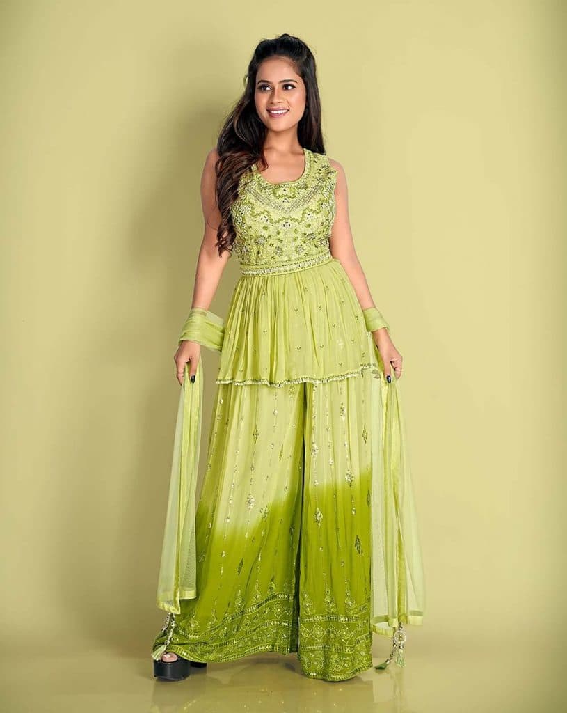 सजावट: इसे स्टाइलिश बूट्स या हील्स के साथ पहनें। लाइट एसेसरीज के साथ आपका लुक और भी ग्रेसफुल लगेगा.