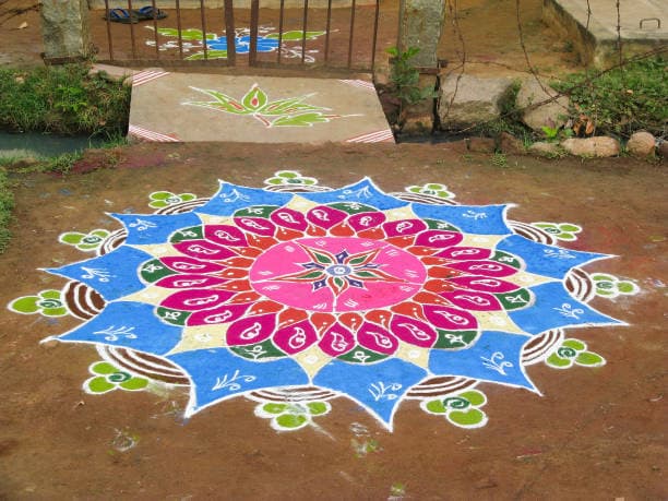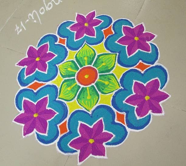 अगर आपके पास कई रंग उपलब्ध हैं तो इस दिवाली आप रंगों के इस्तेमाल से भी रंगोली बना सकती हैं. इस प्रकार की रंगोली डिजाइन देखने में बहुत आकर्षक लगती है. रंगों का इस्तेमाल करके रंगोली बनाते समय आपको दो बातों का विशेष रूप से ध्यान रखना चाहिए, पहली बात यह की रंगोली बनाने से पहले आपके पास विभिन्न साइज के ब्रश भी हो और दूसरा यह कि आप जिस फ्लोर पर रंगोली बनाने जा रहे हैं वो समतल हो, ताकि रंग ना फैलें और रंगोली खराब ना हो जाए.