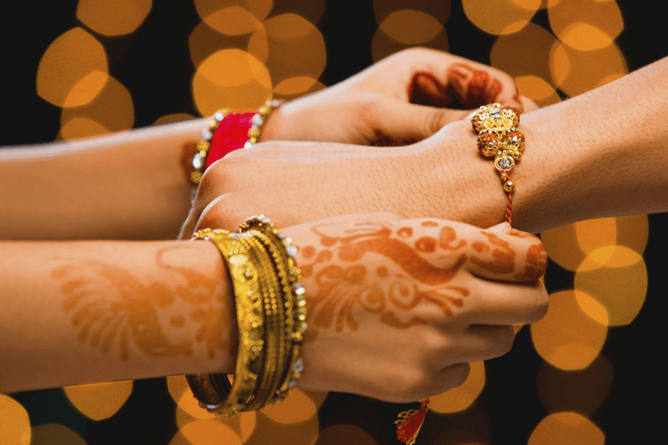सबसे पहले आप सूती धागा, गोल्ड या सिल्वर बैंड्स,रंगीन बीड्स,गोंद और कैंची. सूती धागे की एक लंबी स्ट्रिप काटें. और धागे को घुमा कर बैंड्स पर गोंद लगाकर अच्छे से चिपकाएं. फिर रंगीन बीड्स को धागे पर चढ़ाएं और उन्हें सजाएं. अंत में धागे के दोनों सिरे को कस कर बांध लें.