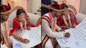 इस वीडियो को वेडलॉक फोटोग्राफी असम ने साझा किया है. इस वीडियो में दूल्हा-दुल्हन कागज पर छपे बड़े कार्डनुमा कॉन्ट्रैक्ट पर साइन करते नजर आ रहे हैं.
