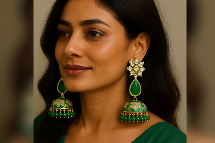 अपने लुक को एक कदम और आगे बढ़ाने के लिए मीनाकारी वर्क वाले इयररिंग्स को जरूर ट्राई करें. ये आपको एक एलिगेंट लुक देने में कारगर हैं.