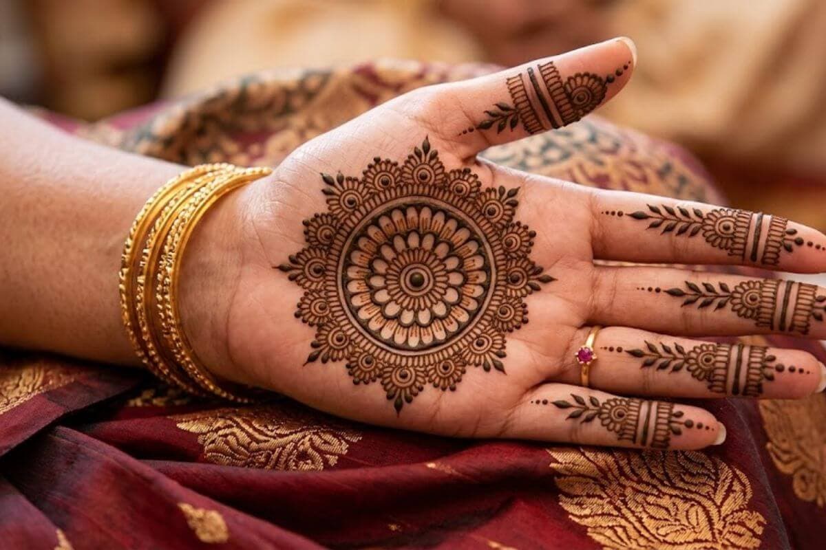 सेंटर मेहंदी डिजाइन में आप मंडला पैटर्न को ट्राई कर सकती हैं. गोल आकार में बना यह खूबसूरत डिजाइन हथेली के बीचों-बीच देखने में बहुत खूबसूरत लगता है. अगर आप हल्का और मिनिमल लुक चाहती हैं तो हथेली के बीच में छोटा सा मंडला बनाकर उंगलियों पर सुंदर मेहंदी डिजाइन बना सकती हैं.