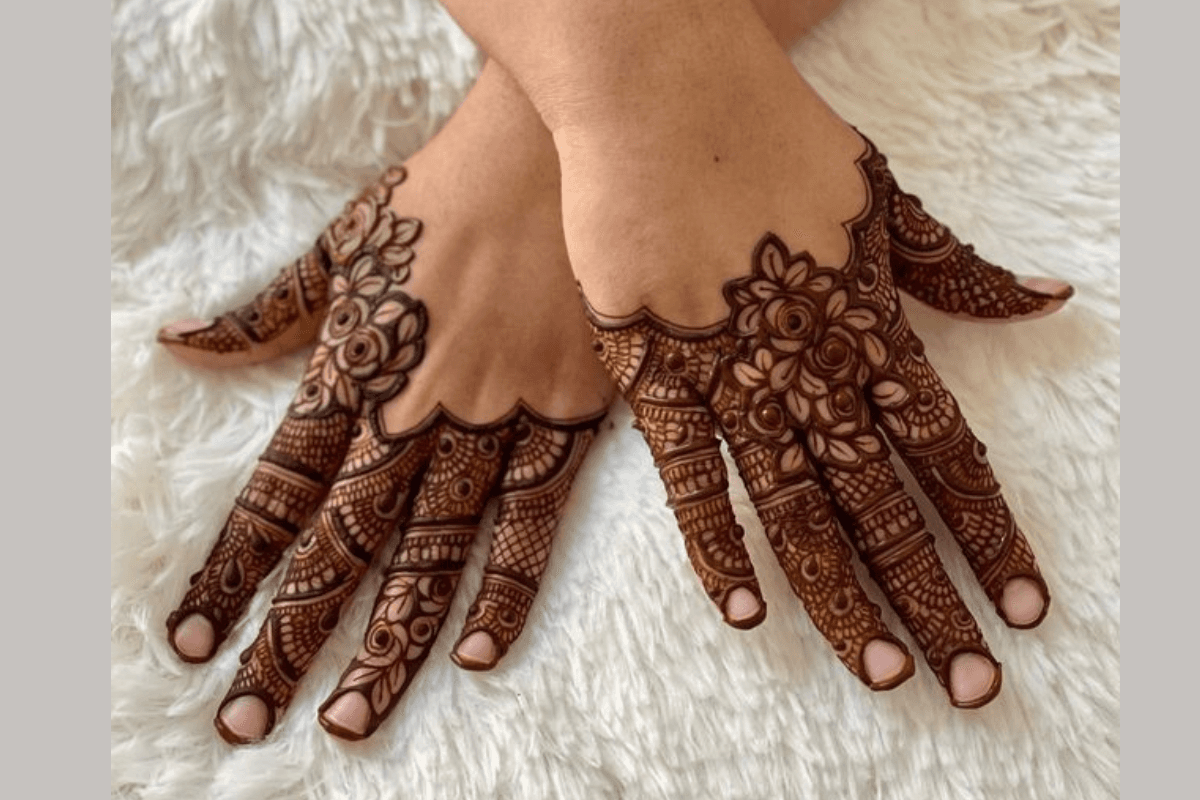 latest eid mehndi designs for fingers: फ्लोरल डिजाइन्स हमेशा से ही फिंगर मेहंदी के लिए पसंद किए जाते हैं. इस डिजाइन में उंगलियों के ऊपरी हिस्से में छोटे-छोटे फूल और पत्तियां बनाई जाती हैं, जो हाथों को बेहद आकर्षक लुक देती हैं. यह डिजाइन उन लड़कियों के लिए परफेक्ट है जो सिंपल लेकिन एलिगेंट मेहंदी पसंद करती हैं.