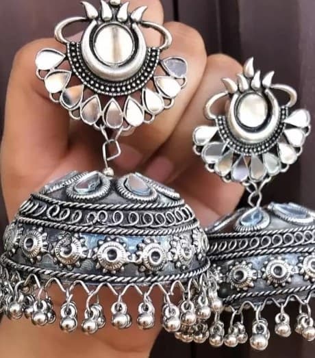 ये पारंपरिक सिल्वर अफगानी स्टाइल के हल्के झुमके आपके पूरे लुक में चार चांद लगा देंगे. ये झुमके हाई-क्वालिटी फिनिश के साथ आते हैं, जो जटिल डिजाइन के साथ आपके व्यक्तित्व को निखार देंगे.