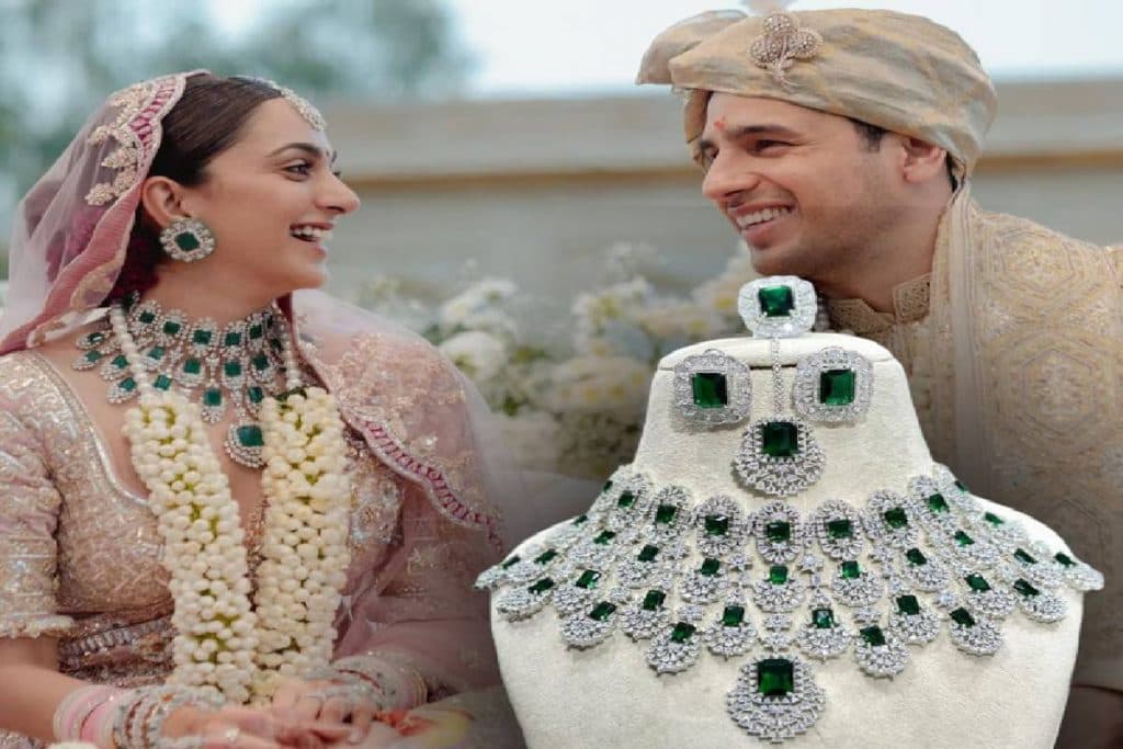 एमरल्ड चोकर सेट ने कियारा आडवाणी के रिसेप्शन लुक को कंप्लीट कियाय. ब्लैक और ऑफ-व्हाइट ड्रेस को स्टेटमेंट एमरल्ड और डायमंड नेकपीस के साथ टीमअप किया गया था. उन्होंने अपने लुक को नेकपीस से हाईलाइट किया. अलग-अलग तरह की जूलरी का यह कलेक्शन दुल्हन के ब्राइडल लुक को और भी निखार देगा.