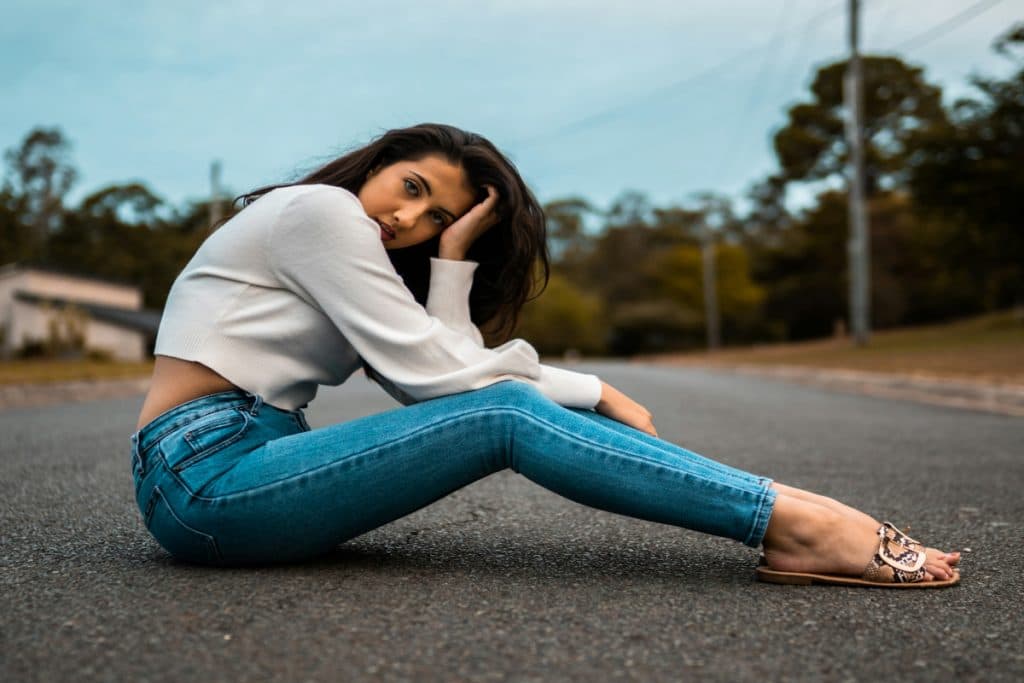 पहने स्किनी जींस