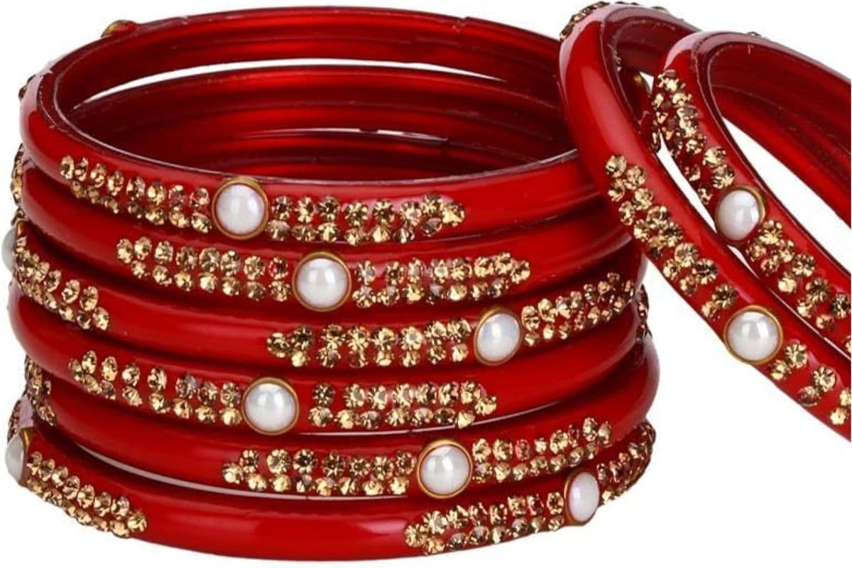 लाल-गोल्डन, हरा-सिल्वर, पिंक-रोज गोल्ड के साथ पहनें यह आपके लुक को और निखारने का काम करती है.कांच की चूड़ियों के साथ मेटल के चूड़े या कड़े जिनमें कुंदन, स्टोन या पर्ल लगे होते हैं.