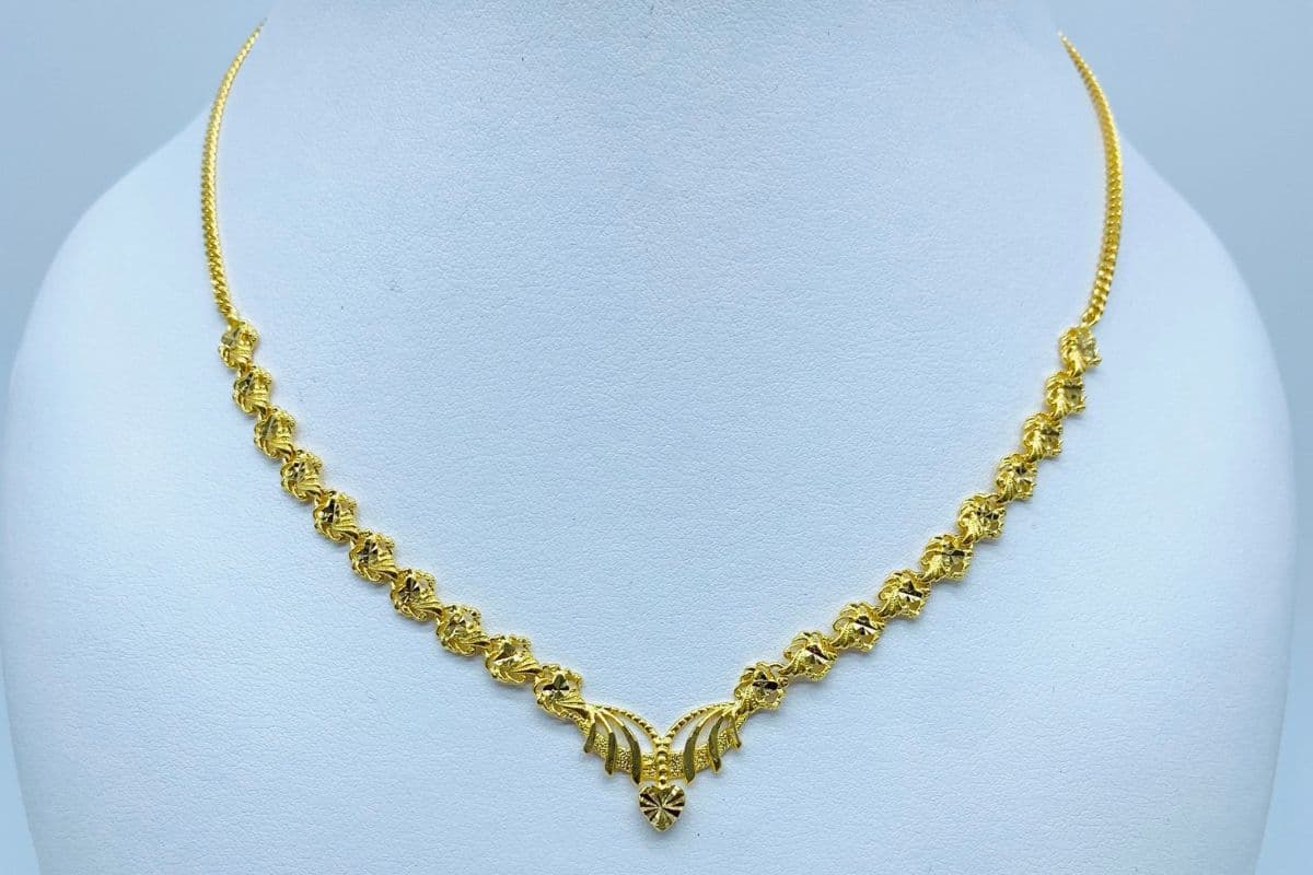 फ्लावर डिजाइन के ये गोल्ड के हल्के नेकलेस आपको अट्रैक्टिव और एलिगेंट लुक देते हैं. इसकी सुंदरता और अनोखा डिजाइन आपको हर अवसर पर खास बनाएगा.