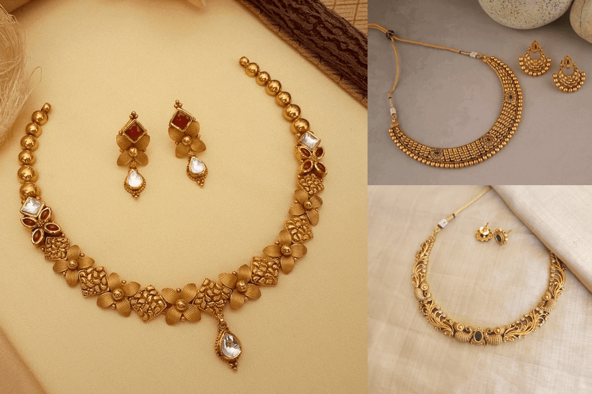 अगर आप स्टाइलिश और मॉडर्न लुक चाहती हैं तो चोकर स्टाइल नेकलेस बेस्ट है. 2025 में कुंदन और पोल्की से सजे गोल्ड चोकर ट्रेंड में हैं. यह डिजाइन ट्रेडिशनल साड़ी से लेकर फ्यूजन आउटफिट तक, हर ड्रेस के साथ खूबसूरत लगता है.
