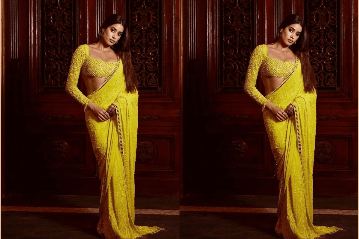 अगर आप इस Akshaya Tritiya पर थोड़ा ग्लैमरस और पार्टी वियर लुक चाहती हैं, तो Golden Yellow रंग की नेट साड़ी जिस पर सीक्विन वर्क किया गया हो, एक बेहतरीन ऑप्शन है. यह साड़ी कॉकटेल और फैमिली फंक्शन के लिए भी उपयुक्त है.