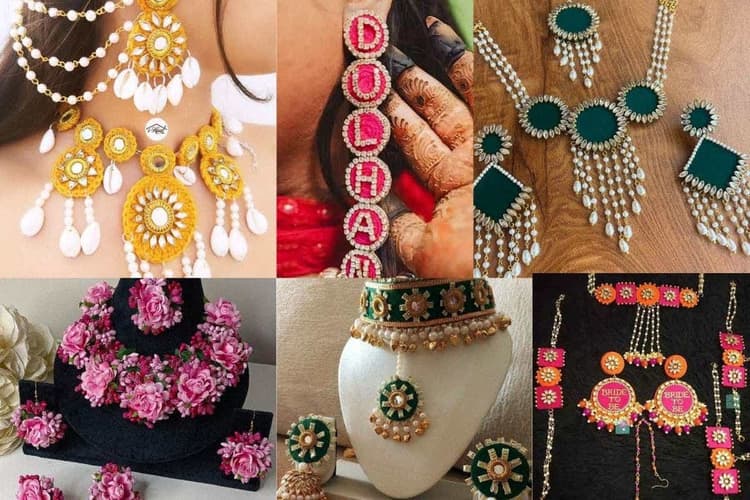हल्दी और मेहंदी पर आजकल ट्रेंडिंग ज्वेलरी में ऐसे एक्सेसरीज बहुत पसंद किए जा रहे हैं जिन पर “Bride-to-be”, #Bride, #Haldi जैसे लिखे शब्द होते हैं. यह दुल्हन को फंक्शन में पूरे मजेदार और स्टाइलिश अंदाज में प्रेजेंट करता है और फोटोज में भी बहुत क्यूट लगता है, इसलिए ट्रेंड फॉलो करने वाली दुल्हनें इसे जरूर ट्राई कर सकती हैं.