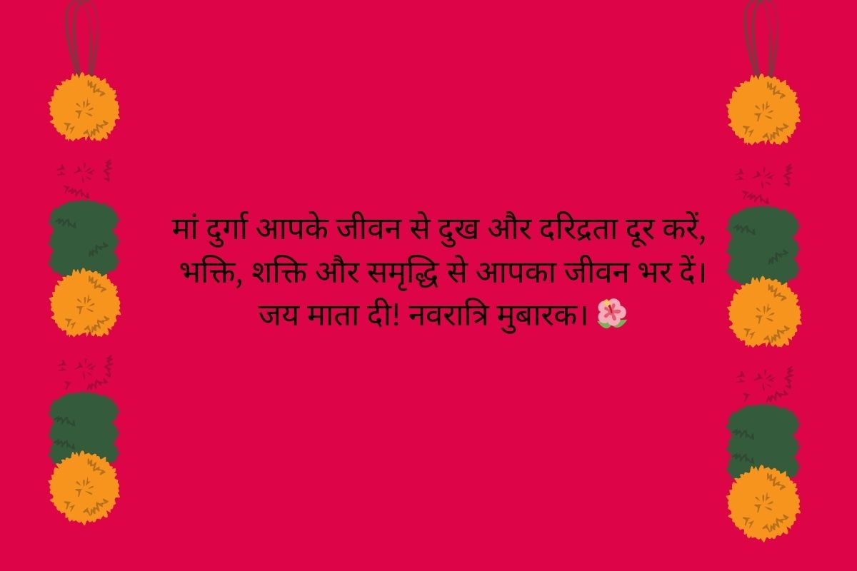 Happy Durga Puja wishes images: मां दुर्गा आपके जीवन से दुख और दरिद्रता दूर करें, भक्ति, शक्ति और समृद्धि से आपका जीवन भर दें। जय माता दी! नवरात्रि मुबारक।