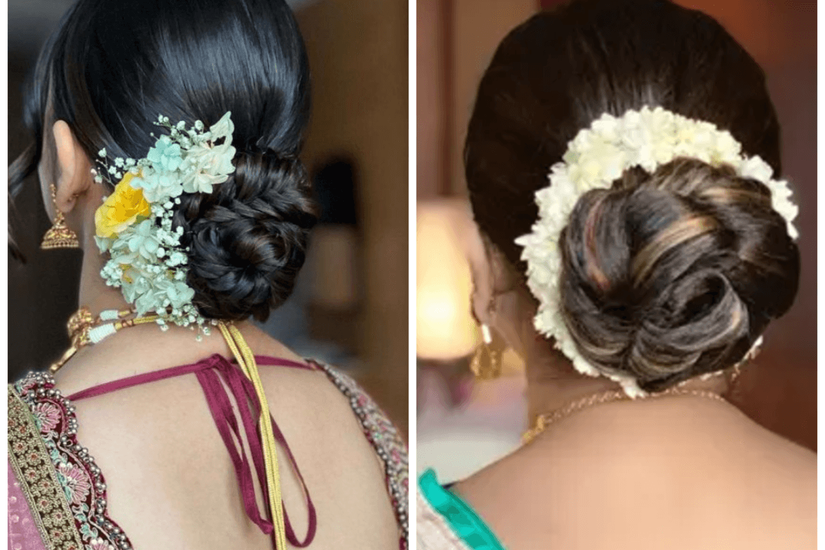 Hariyali Teej Hair Style: बन विथ फ्लोरल एक्सेसरीज