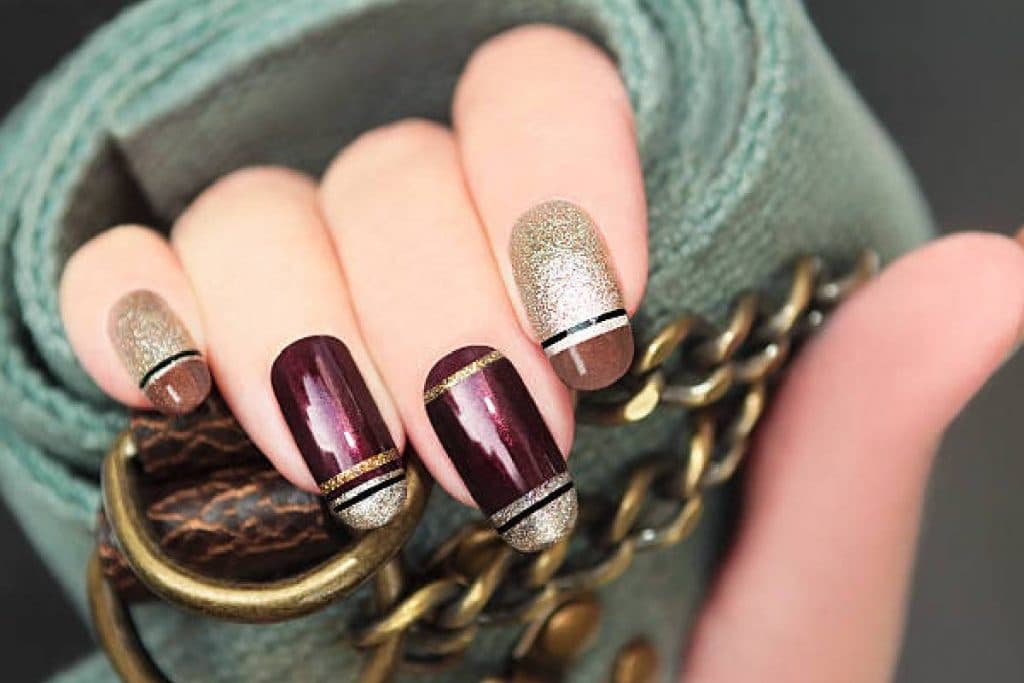 न्यूड शेड पसंद करने वाली महिलाओं के लिए ये डिजाइन परफेक्ट है. न्यूड शेड के बेस के साथ किया गया ये नेल आर्ट कमाल का लग रहा है. इसकी खूबसूरती बढ़ाने के लिए इस पर गोल्डन ग्लिटर का इस्तेमाल किया गया है.