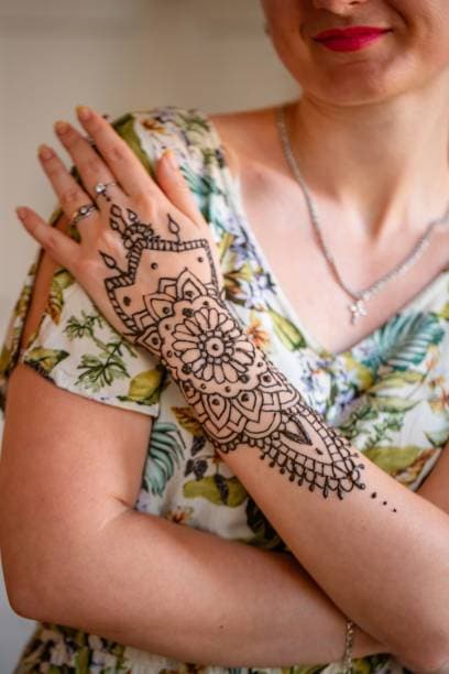 फ्लोरल मेहंदी डिजाइन में आपको फूल और पत्तियों के पैटर्न नजर आएंगे जो प्रकृति के प्रभावित होकर बनाए जाते हैं. ये हाथों को पारंपरिक लुक देते हैं और साड़ी के साथ ये डिजाइन बहुत सुंदर लगते हैं.