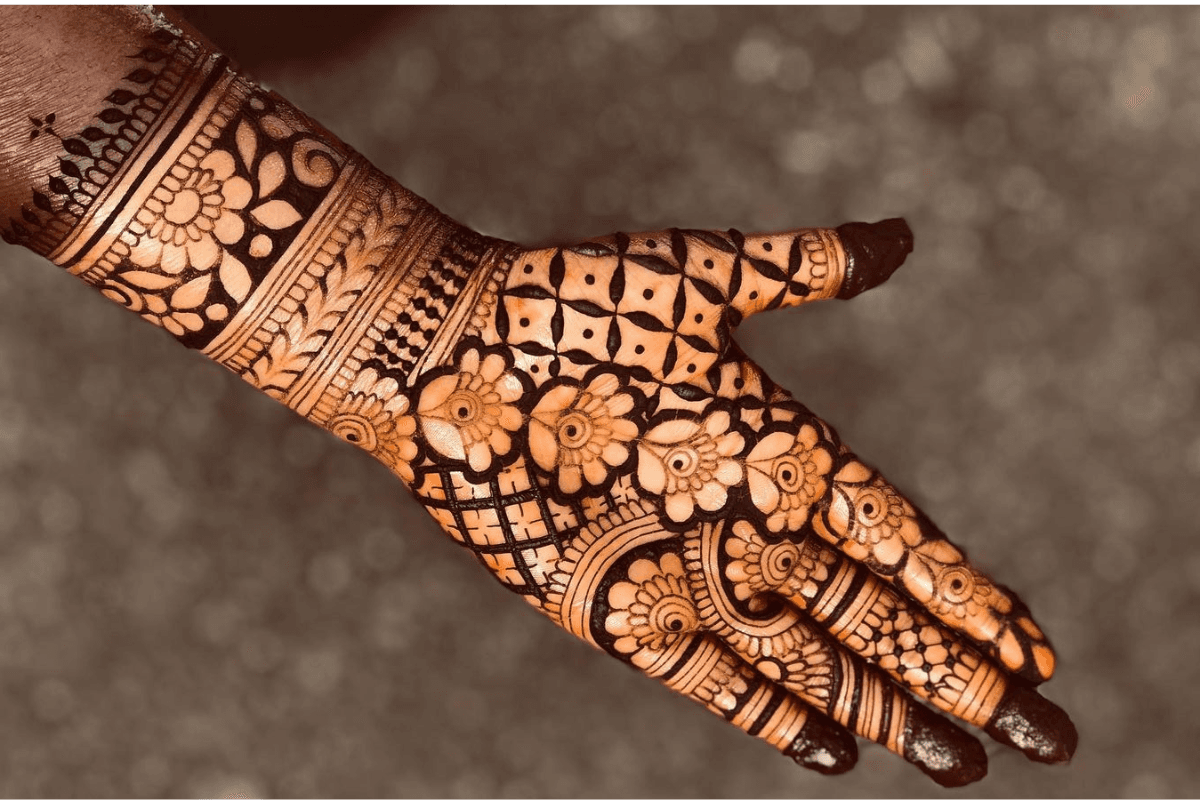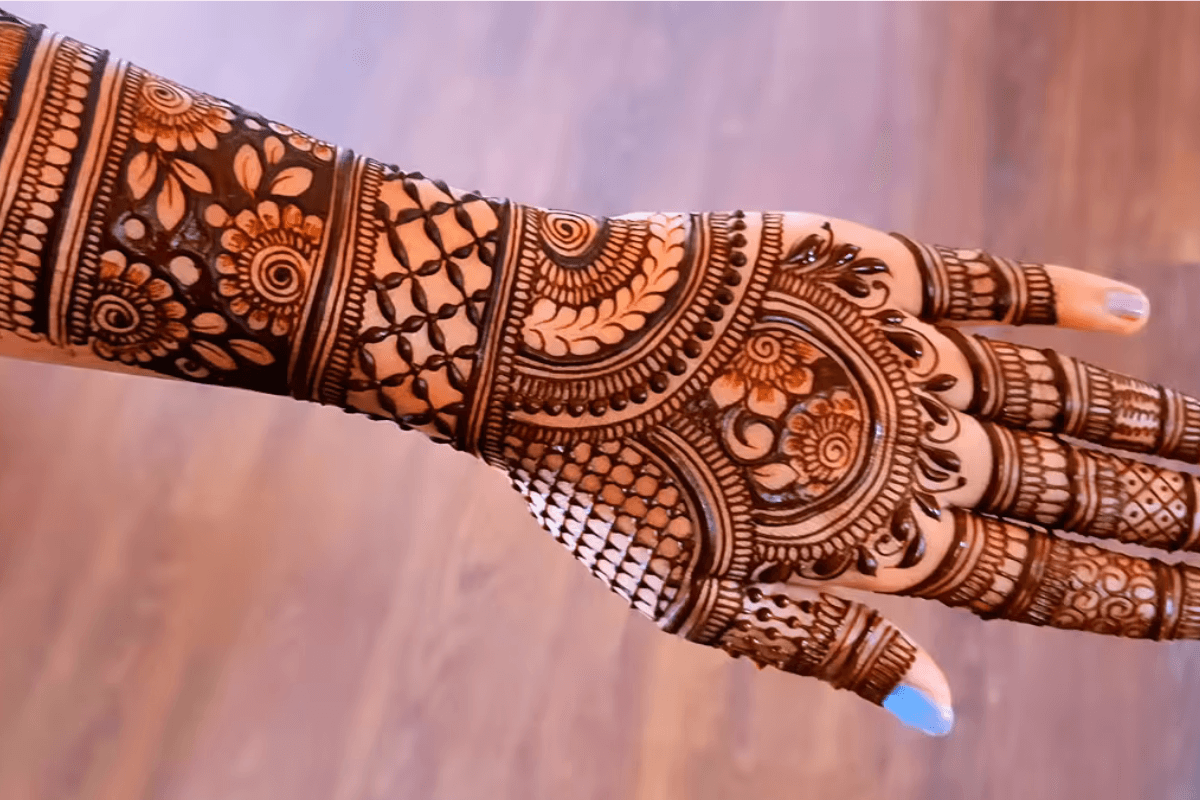 इस तीज पर ट्रेंडिंग मेहंदी पैटर्न से अपने लुक में ग्लैमर जोड़ें. यह डिजाइन हाथों की खूबसूरती और आपके कॉन्फिडेंस दोनों बढ़ाता है. हर नजर में आप खूबसूरत और स्टाइलिश लगेंगी.