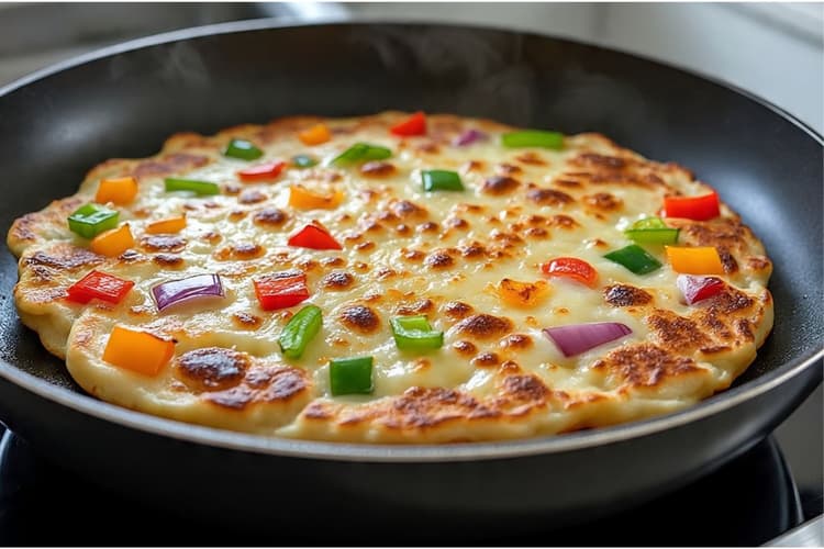- अब एक कलछी घोल लेकर तवे पर गोल फैला दें जैसे डोसा बनाते हैं.