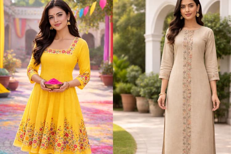रंगों की बौछार, मिठाइयों की खुशबू और दोस्तों-परिवार के संग मस्ती, होली का त्योहार खुशियों से भरा होता है. अब जल्द ही होली का त्योहार आने वाला है. इस मौके पर आप भी अपने लुक को खास बनाना चाहती हैं तो ये सुंदर और स्टाइलिश कुर्ती को पहन सकती हैं. आइए इस आर्टिकल से जानते हैं कुछ कुर्ती डिजाइन आइडियाज.