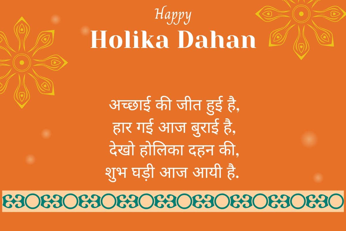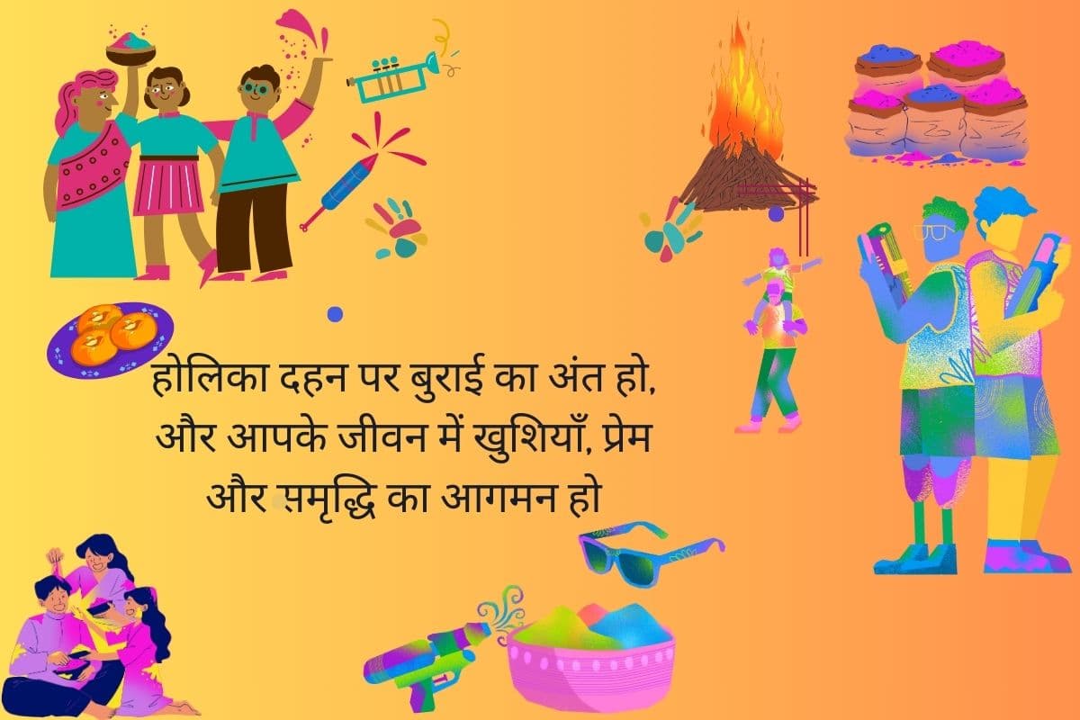 - “यह होली का पर्व हमें जीवन में सकारात्मकता और प्रेम का संदेश दे, होलिका दहन के इस शुभ अवसर पर बुराई का नाश हो.”