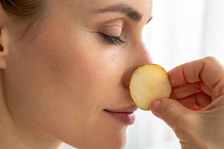 - ताजे आलू का एक टुकड़ा काट लें.