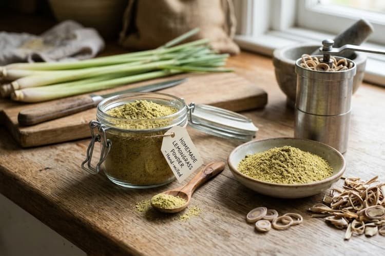 Homemade Lemongrass Powder: लेमन ग्रास पाउडर एक प्राकृतिक और खुशबूदार हर्बल सामग्री है, जिसका उपयोग चाय, काढ़ा और कई तरह के व्यंजनों में किया जाता है. इसमें मौजूद एंटीऑक्सीडेंट और औषधीय गुण शरीर को स्वस्थ रखने में मदद करते हैं. लेमन ग्रास की ताजा पत्तियों को सुखाकर और पीसकर इसका पाउडर तैयार किया जाता है, जो लंबे समय तक सुरक्षित रहता है. यह पाचन सुधारने, तनाव कम करने और इम्युनिटी बढ़ाने में सहायक माना जाता है. घर पर आसानी से बनने वाला यह पाउडर न केवल स्वाद बढ़ाता है, बल्कि सेहत के लिए भी बेहद फायदेमंद होता है.