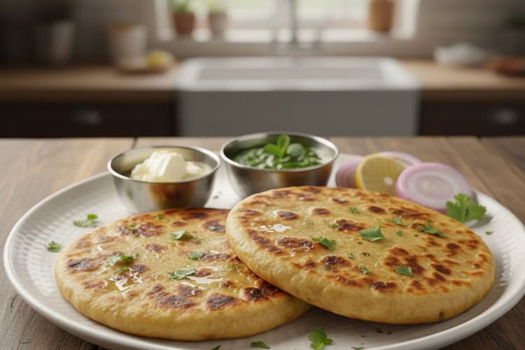 बिना आटा गूंथे बने आलू पराठे को आप दही, मक्खन, हरी चटनी या अचार के साथ गरम-गरम परोस सकते हैं. यह नाश्ते या हल्के भोजन के लिए एकदम परफेक्ट है.