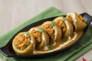 - अब लौकी के टुकड़ों में बने हुए मिश्रण को अच्छे से भर दें.
