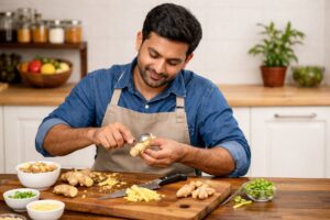 How To Peel Ginger Properly: अदरक भारतीय रसोई का एक बेहद ज़रूरी मसाला है, जो स्वाद बढ़ाने के साथ-साथ सेहत के लिए भी बहुत फायदेमंद माना जाता है. चाय से लेकर सब्ज़ी, दाल और काढ़े तक अदरक का इस्तेमाल लगभग हर घर में होता है. लेकिन बहुत कम लोग जानते हैं कि अदरक को सही तरीके से छीलना भी उतना ही ज़रूरी है, ताकि उसका स्वाद, खुशबू और पोषक तत्व सुरक्षित रहें. गलत तरीके से छीलने पर अदरक का बड़ा हिस्सा बर्बाद हो जाता है. ऐसे में अदरक छीलने का सही तरीका जानना हर गृहिणी और कुकिंग लवर के लिए बेहद काम का है.