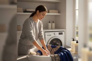 सूट के लेबल को पढ़ें. अगर उस पर “Dry Clean Only” लिखा है तो उसे घर पर धोएं नहीं — सिर्फ स्पॉट क्लीनिंग और स्टीमिंग करें.