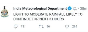 भारतीय मौसम विज्ञान विभाग के ऑफिशियल ट्विटर हैंडल से बुधवार की रात (10.41 बजे) एक ट्वीट किया गया. इसमें लिखा गया- ‘अगले तीन घंटे तक हल्की से मध्यम बारिश की संभावना है.’ आईएमडी ऐसे ट्वीट करता रहता है और इस बार गलती इतनी हुई कि ट्वीट में लोकेशन का जिक्र नहीं किया गया था. इस ट्वीट पर यूजर्स की नजर पड़ी तो उन्होंने आईएमडी को ट्रोल कर दिया.