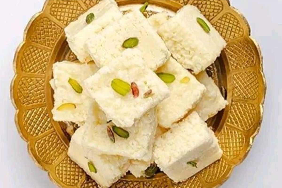 - सजावट और कटिंग : ऊपर से बारीक कटे हुए पिस्ते और बादाम डालें. इसे हल्के हाथों से दबा दें ताकि मेवे चिपक जाएं. इसे 1से 2 घंटे के लिए सेट होने दें.