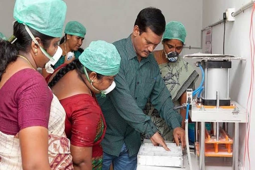 अरुणाचलम कोयंबटूर, तमिल नाडु से एक सोशल इंटरप्रेन्योर है. इन्होने एक पैड मशीन का आविष्कार किया जिससे की कम पैसों में पैड बन सके और गाँव में रहने वाली महिलाए कपड़ो का इस्तेमाल छोड़ पैड का इस्तेमाल कर सकें. इस मशीन को बनाने की प्रेरणा उन्हें तब मिली जब उन्होंने अपनी पत्नी को मासिक धर्म से निपटने के लिए पुराने कपड़ों का इस्तेमाल करते हुए देखा क्योंकि वह सैनिटरी पैड नहीं खरीद सकती थीं. तब उन्होंने खुद सैनिटरी पैड को बनाने का फैसला किया. वह इस मशीन को बनाने की प्रक्रिया में बहुत बार असफल रहे पर उन्होंने कभी हार नहीं मानी. उन्हें इस पैड को बनाने के लिए सही सामग्री ढूंढने के लिए और मशीन बनाने के लिए दो वर्ष लगे. इस मशीन से ग्रामीण इलाकों में रहने वाली महिलाओ को काफी लाभ मिले – जैसे अब वह पैड कम दाम में खरीद सकती थी और उन्हें रोजगार के कई अवसर प्राप्त हुए. 2014 में, इन्हे टाइम पत्रिका की दुनिया के 100 सबसे प्रभावशाली लोगों की सूची में शामिल किया गया था. 2016 में, भारत सरकार द्वारा इन्हे पद्म श्री से भी सम्मानित किया गया था.