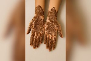 - हथेली के बीच में गोल मंडला और उसके चारों ओर डिटेलिंग.