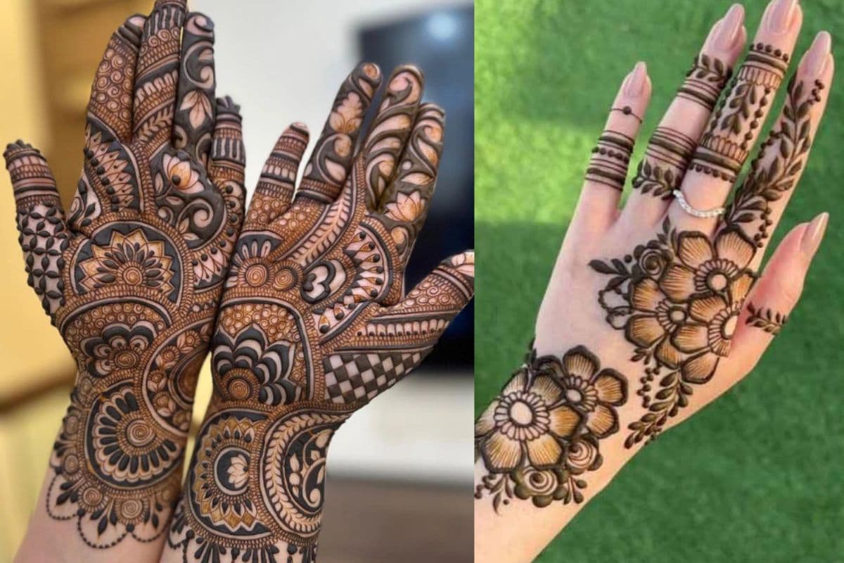 यह भी एक हाथों में भरा हुआ मेहंदी डिजाइन है. वहीं दूसरी ओर पूरी हाथों में लेकिन सिंपल और हल्की मेहंदी डिजाइन है.