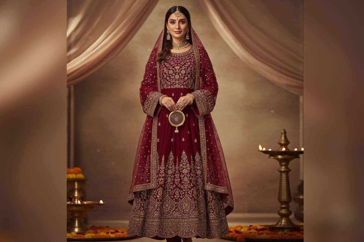 करवा चौथ पर आप अनारकली सूट को पहन रही हैं तो आप इस लुक को ट्राई कर सकती हैं. इसे आप हेवी ज्वेलरी जैसे झुमके, चूड़ियां और मैचिंग क्लच के साथ स्टाइल करें.
