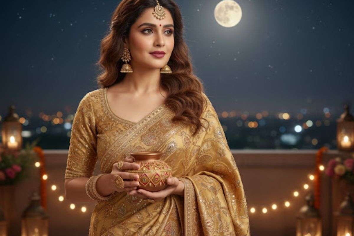 Karwa Chauth Fashion Tips,Makeup tips,Saree Design, Mehndi Design, Images Live: करवा चौथ का त्योहार सुहागिन महिलाओं के लिए बहुत ही खास होता है. इस मौके पर महिलाएं अपने पति की लंबी उम्र, सुख-समृद्धि और अच्छे स्वास्थ्य की कामना के लिए व्रत पूरे दिन का व्रत रखती हैं. इस खास दिन पर महिलाएं सोलह शृंगार करती हैं. अपने लुक को निखारने के लिए महिलाएं अलग-अलग स्टाइलिंग टिप्स को भी फॉलो करती हैं. इस दिन पर मेहंदी भी हाथों में महिलाएं लगाती हैं. इस मौके पर लोग अपनों को शुभकामनाएं भी भेजते हैं. इस मौके पर आप भी इमेज को शेयर कर सकते हैं या फिर स्टेटस में लगा सकते हैं.