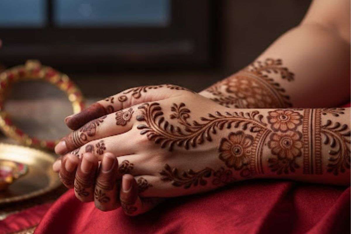 आप हाथों में बेल और फूलों के पैटर्न की मेहंदी डिजाइन को लगाकर हाथों की खूबसूरती को बढ़ा सकती हैं. ये आपके करवा चौथ लुक के लिए परफेक्ट है.
