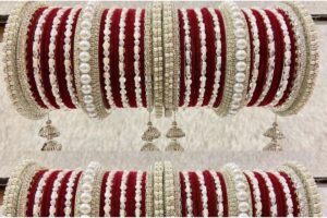 मल्टीकलर फ्यूजन चूड़ी सेट : अगर आप एक ही रंग में नहीं रहना चाहतीं तो मल्टीकलर फ्यूजन चूड़ी सेट चुनें. रेड, ग्रीन, येलो और गोल्ड का मिक्स लुक आपकी कलाईयों को आकर्षक और फेस्टिव बना देगा.
