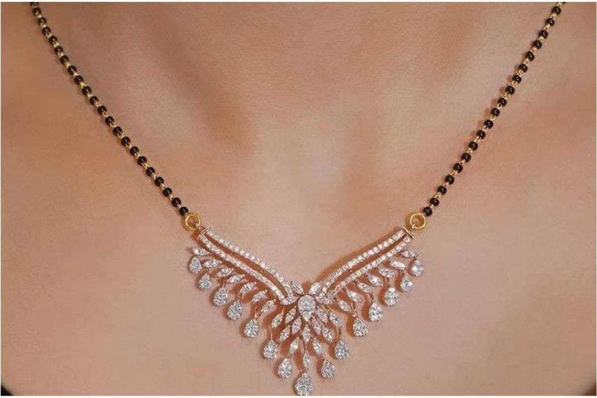 डायमंड सोलिटेयर पेंडेंट (आलिया भट्ट लुक) : इसमें काले मोतियों की पतली चेन होती है. चेन के बीचों-बीच एक या दो छोटे, चमकीले डायमंड सोलिटेयर लगे होते हैं.यह मंगलसूत्र हल्का होने के बावजूद बहुत क्लासी और स्टाइलिश दिखता है.