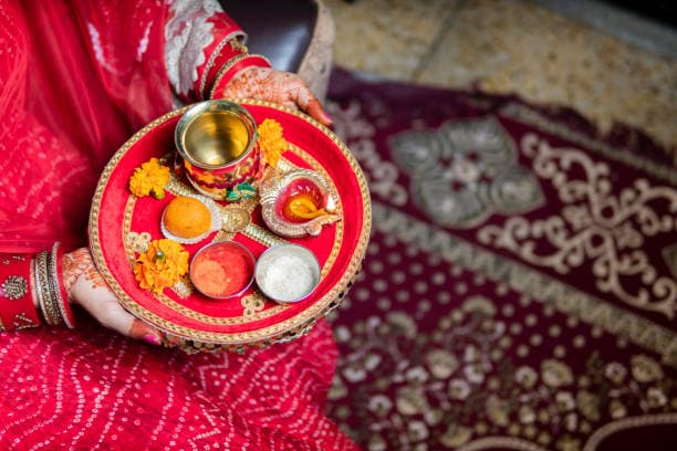 ज्योतिषाचार्य बताते हैं कि करवा चौथ की पूजा की थाली सजा लें. उस थाली में पंचोपचार या षोडशोपचार पूजन सामग्री जरूर रखें जैसे फूल, बेलपत्र, रोली कुमकुम, चंदन, अक्षत आदि. इसके बाद थाली में सिंदूर, श्रृंगार का सामान, जल का लोटा, दूध का लोटा, फल, मिट्टी या आटे का दीया, छलनी, नारियल, मिट्टी का करवा और करवा कथा की पुस्तक रखें. इन सभी चीजों से पूजा करने पर दांपत्य जीवन में खुशहाली आती है.