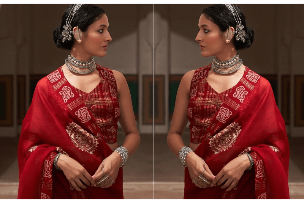 इस साड़ी को नाजुक कढ़ाई या मिरर वर्क वाले स्टेटमेंट ब्लाउज़ के साथ पहनें और उत्सव का तड़का लगाएं. अपने लुक को पूरा करने के लिए झुमके या चोकर सेट जैसे पारंपरिक आभूषण पहनना न भूलें.बोल्ड रेड लिपस्टिक के साथ मिनिमल लेकिन एलिगेंट मेकअप लुक आपके उत्सव के आकर्षण को और बढ़ा सकता है
