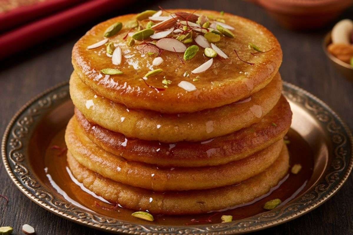 इसे बनाने के लिए आपको कम सामग्री की जरूरत होगी. इसके लिए आप मैदा, सूजी और दूध मिलाकर पतला घोल तैयार करें, फिर 2 घंटे के लिए ढककर रख दें. अब एक पैन में घी गरम करें और छोटे-छोटे मालपुआ तलें. इसके बाद इसे चाशनी में डालकर 5 मिनट के लिए डुबोएं. करवा चौथ पर ये मिठाई बेस्ट होगी.