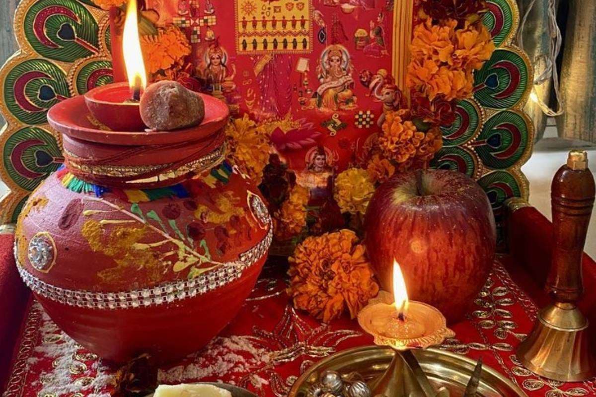करवा चौथ की पूजा में मिट्टी के करवे को शुभ वस्तुओं से भरा जाता है. इसमें पानी, कच्चा चावल, रोली, कुमकुम, मिठाई, सुपारी, चूड़ी, सिंदूर, और दक्षिणा (सिक्के या पैसे) रखे जाते हैं. कई जगहों पर महिलाएं इसमें हल्दी या गेहूं के दाने भी रखती हैं. यह सब वस्तुएं समृद्धि, सौभाग्य और वैवाहिक सुख का प्रतीक मानी जाती हैं.